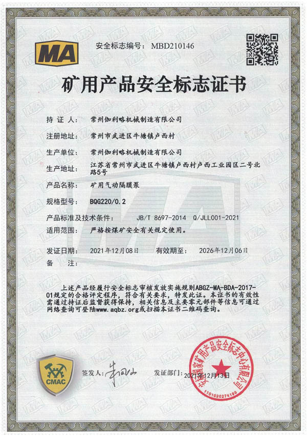 • 礦用安全標志證書-BQG220/0.2